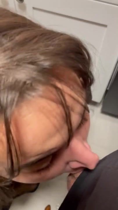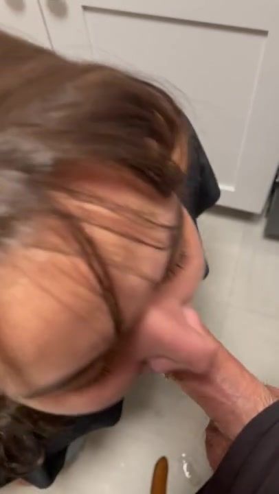 MIXED CHICK ON HER KNEES SUCKS COCK IN THE KITCHEN AND SWALLOWS A HUGE LOAD