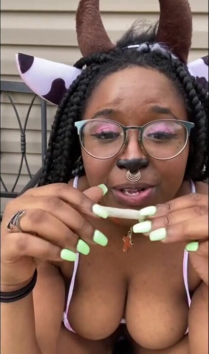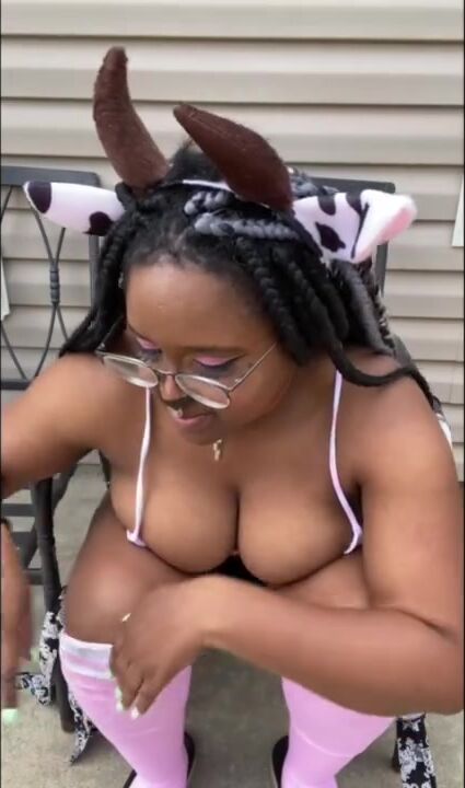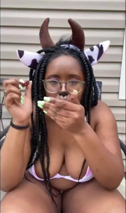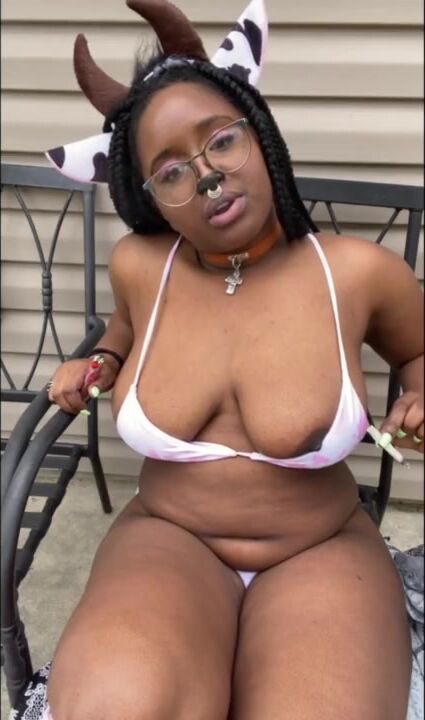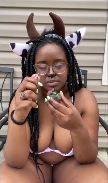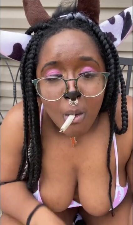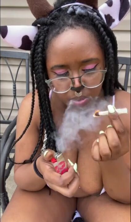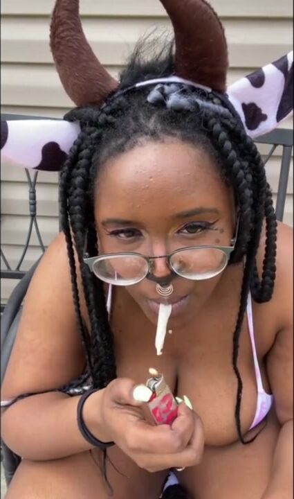 THICK COW SMOKES WEED AND PEES OUTSIDE