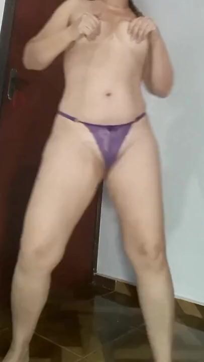 . I Mirelladelicia dancing and taking off my new shorts and bra set, showing off my purple panties