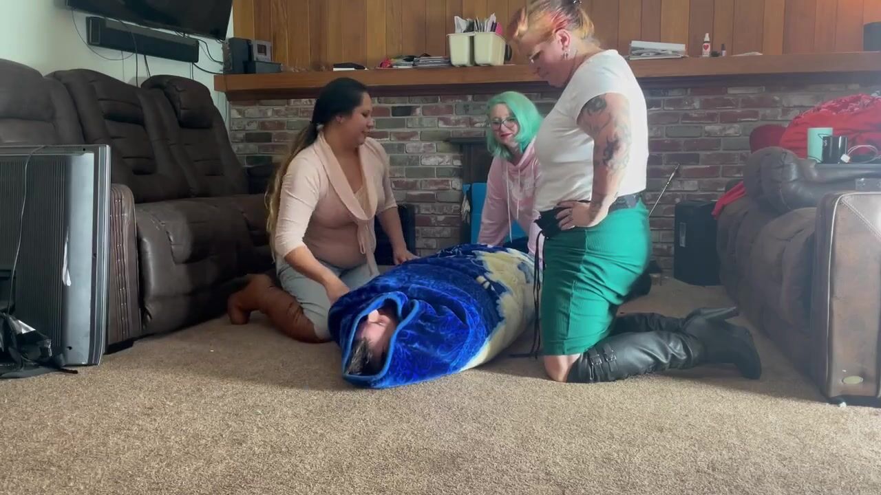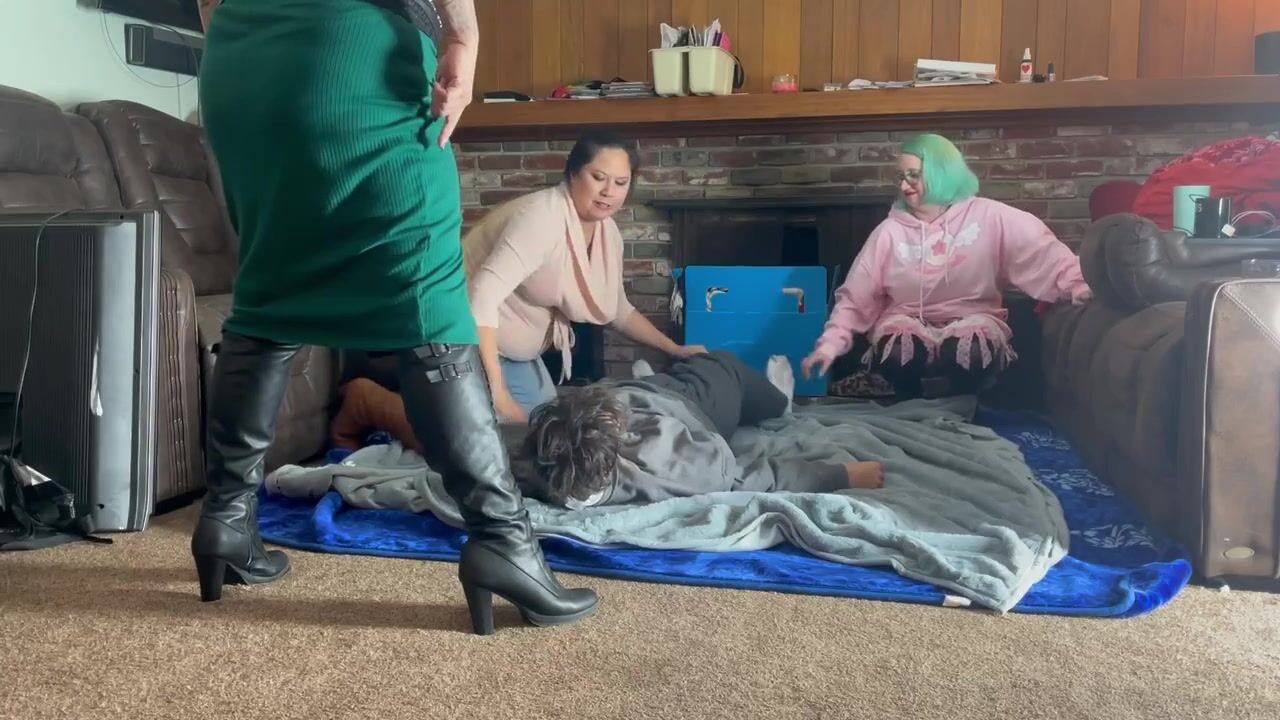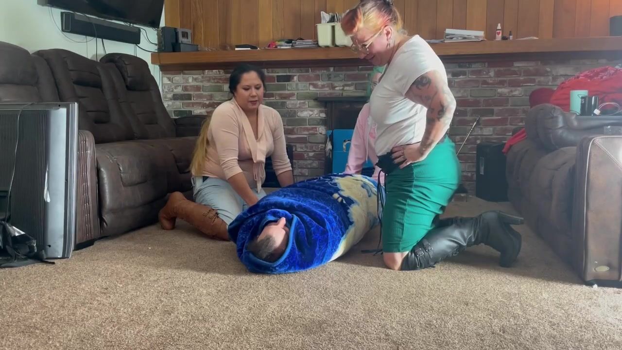 3 DOMINATED WOMEN TIES UP PIZZA GUY