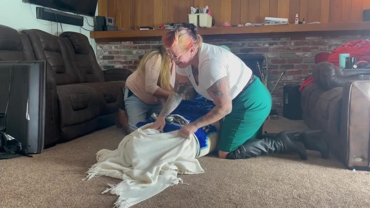 Lesbian ties up inexperienced nerd