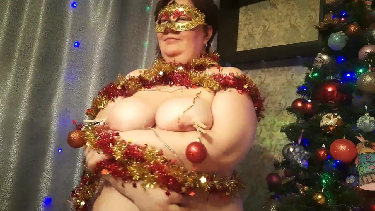 . Chubby girl with big natural tits in a holiday fetish fantasy. Bound by shiny garlands she enjoys a blowjob with oral creampie. Mery XXXmas and happy new year dear fans and subscribers!