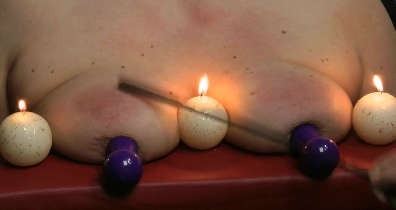 . I have to kneel in front of the box and put my big tits on it. Then he sands my bulging udders, and these include spank even with the cane. The wax which he pours out, he hits with the cane again. Sha