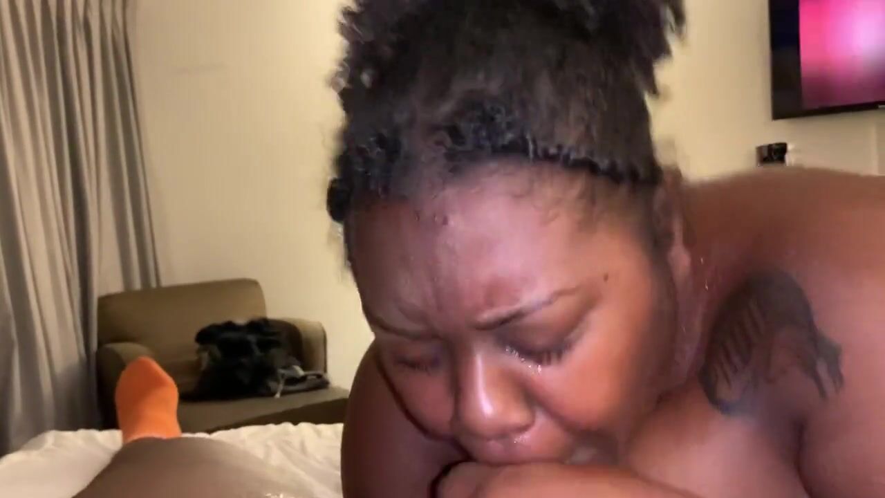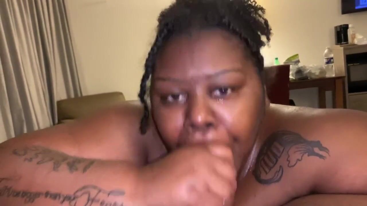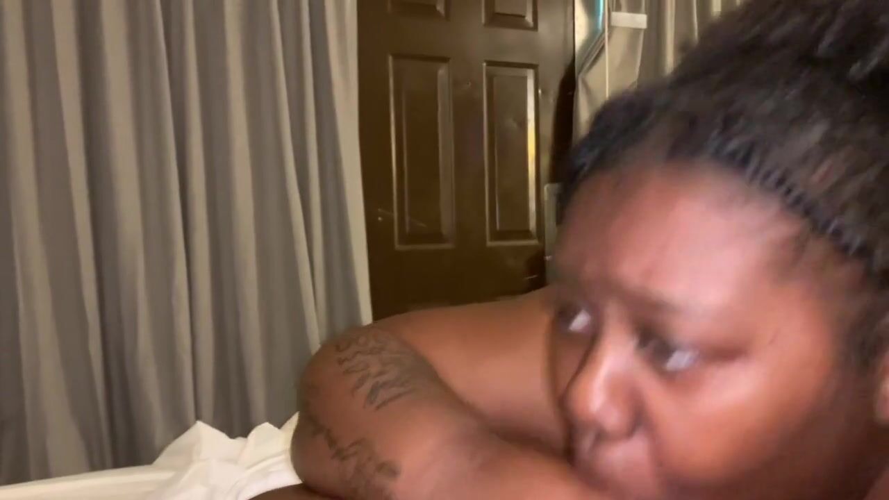 Ebony BHM dicks down Ebony BBW in Coral Springs hotel, ends with doggy style cream pie.