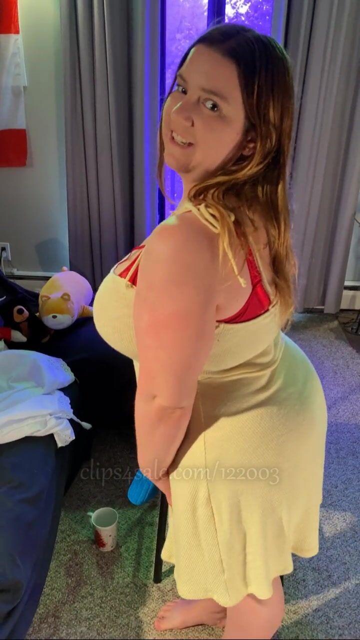 WEVIBE EDGING ORGASMS WITH MINIDRESS STRIPTEASE - BBW 38G TORPEDO TITS AND G-STRING - PLUS SIZE MODELING FETISH