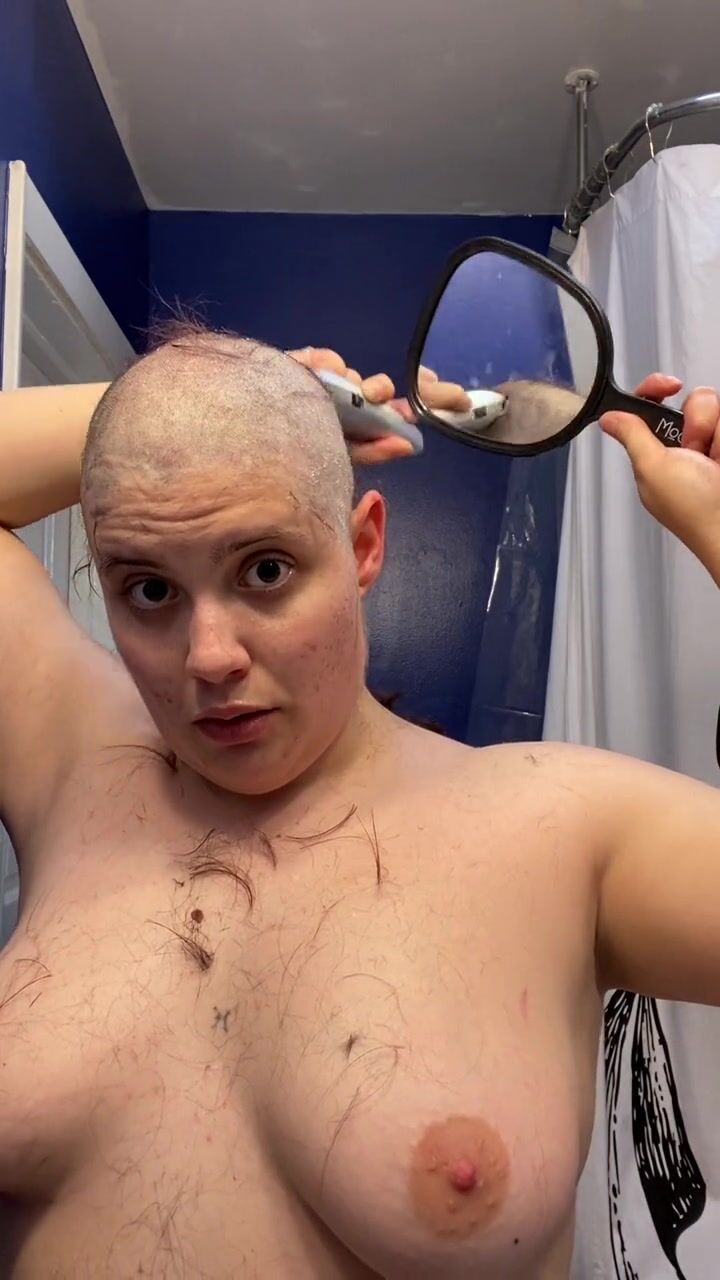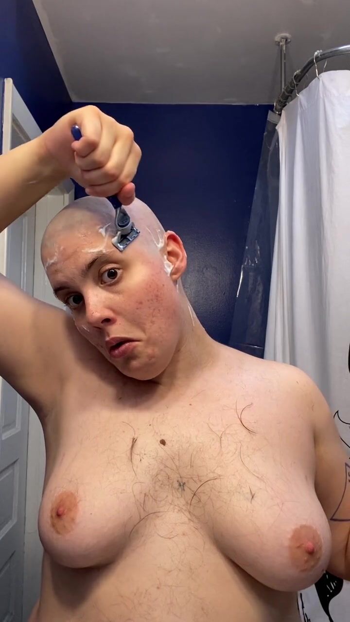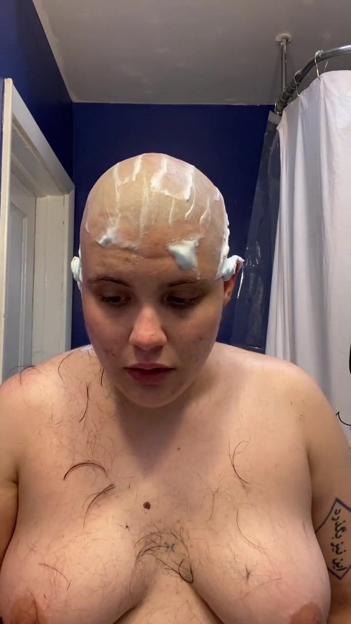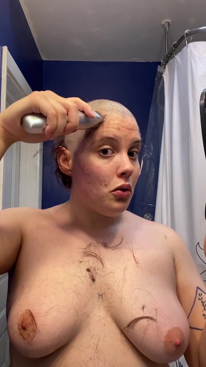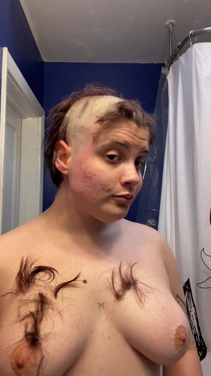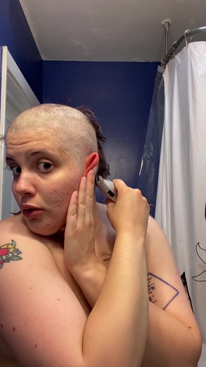 . Watch headshave fetishist slut Adama as they mat chewing gum into their hair at the roots, hack it out with scissors, and having tons of fun shaving all their hair and eyebrows off before cumming hard