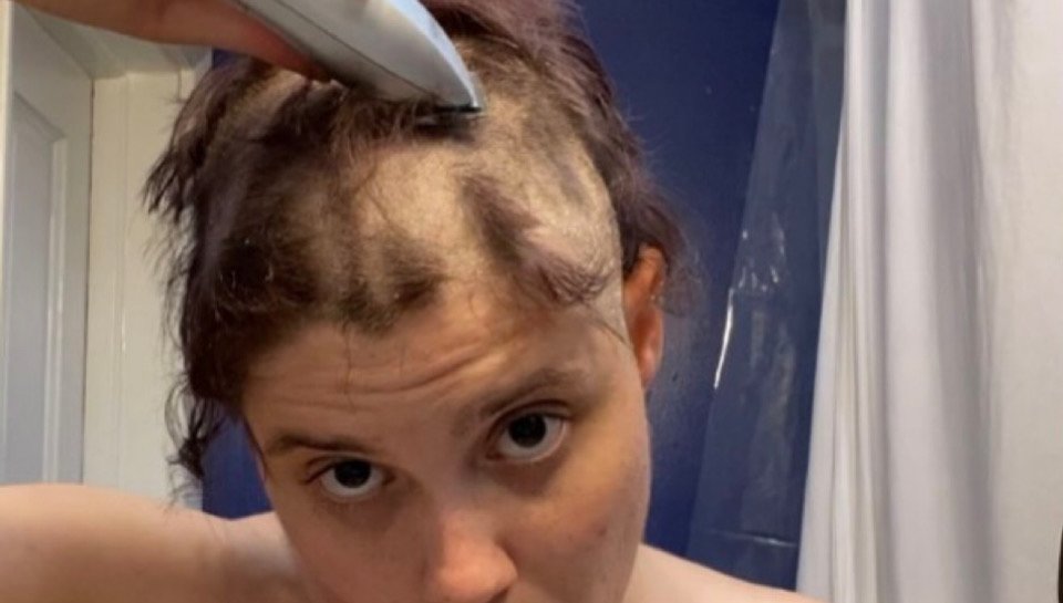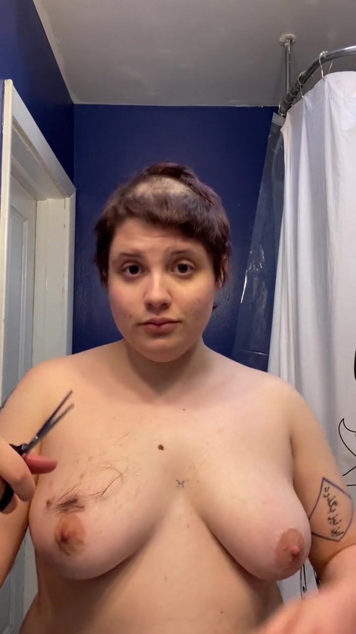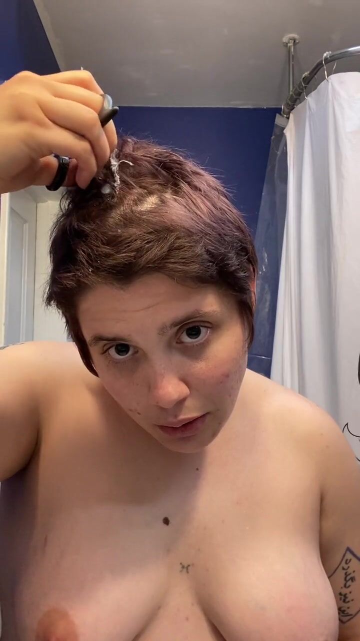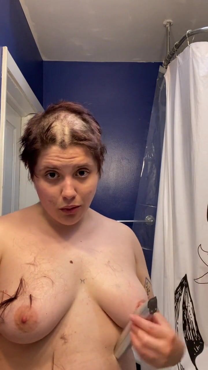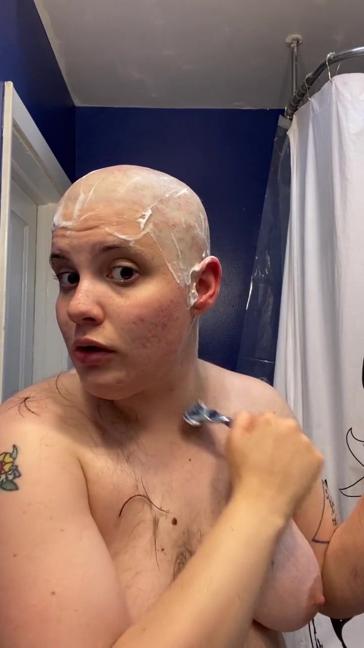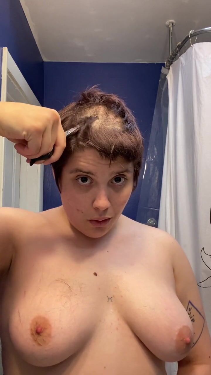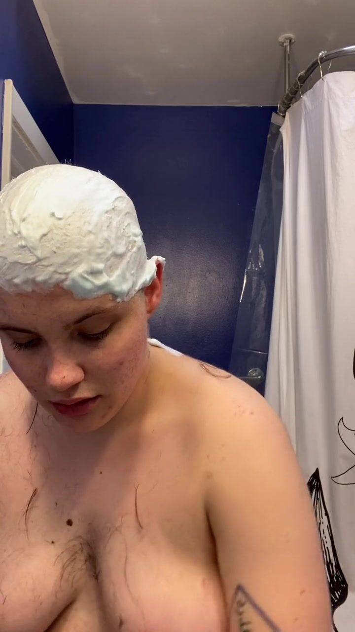 . Watch headshave fetishist slut Adama as they mat chewing gum into their hair at the roots, hack it out with scissors, and having tons of fun shaving all their hair and eyebrows off before cumming hard
