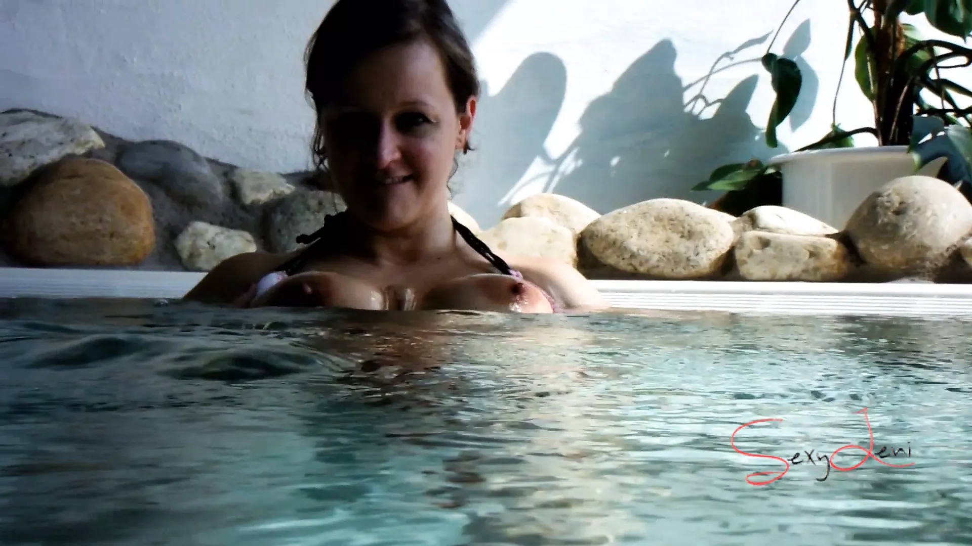 . I was alone in the hotel jacuzzi and was totally horny. I smuggled in my dildo in the towel and after I fingered my cunt, I had to stir the dildo around in my juice cunt and looked for a dirty blowjob