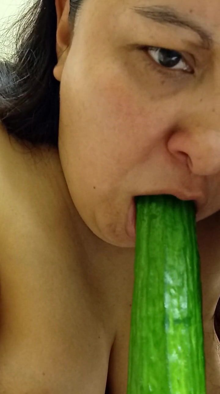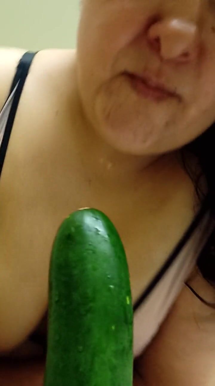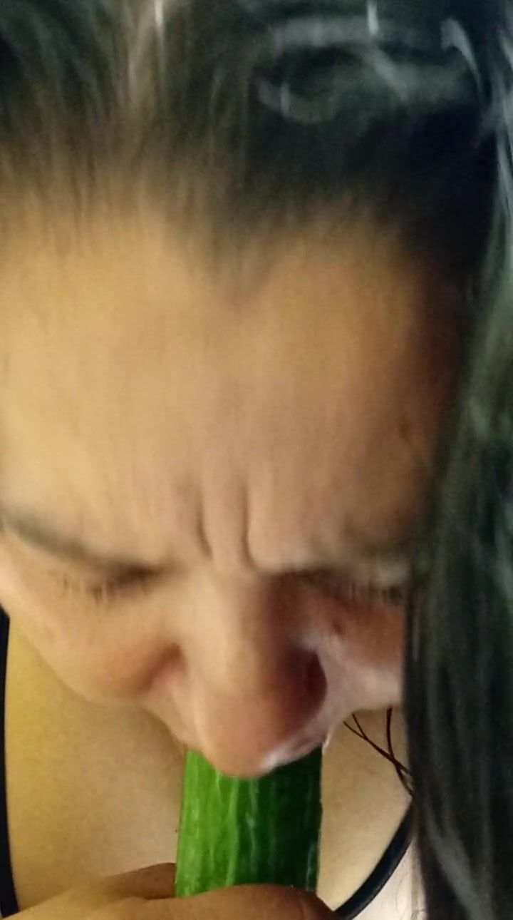 . Having no cock , slut tries to use a cucumber on her holes. Things get a little messy for the slut in the thirst for cock.