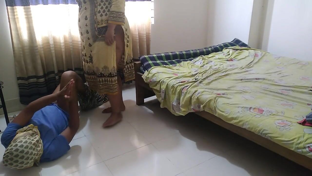 . An 18-year-old working boy was cleaning the house, Then the lady owner of the house got sexually excited and fucked the him - Huge cumshot cowgirl riding