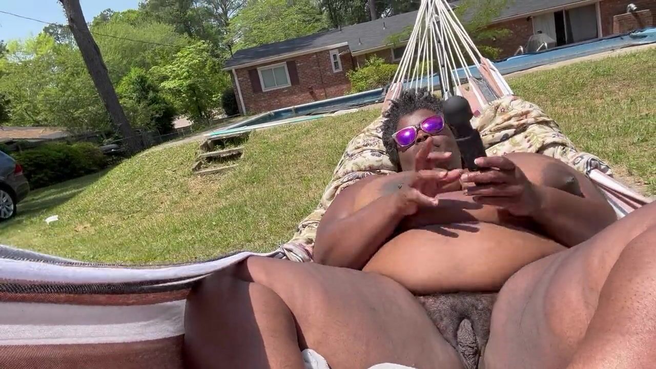 . A quick snippet of mommy masturbating in the backyard hammock with her black wand.