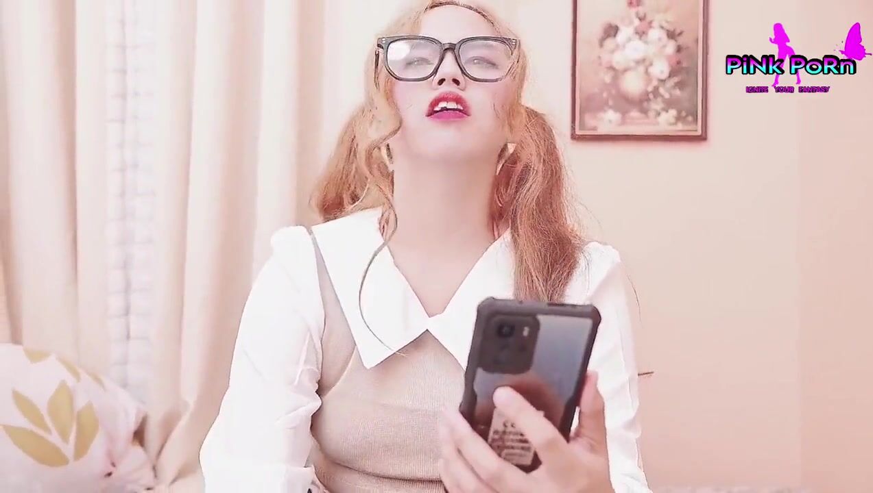. Nerdy student just want flirt to her boy friend but someone Sneaking.