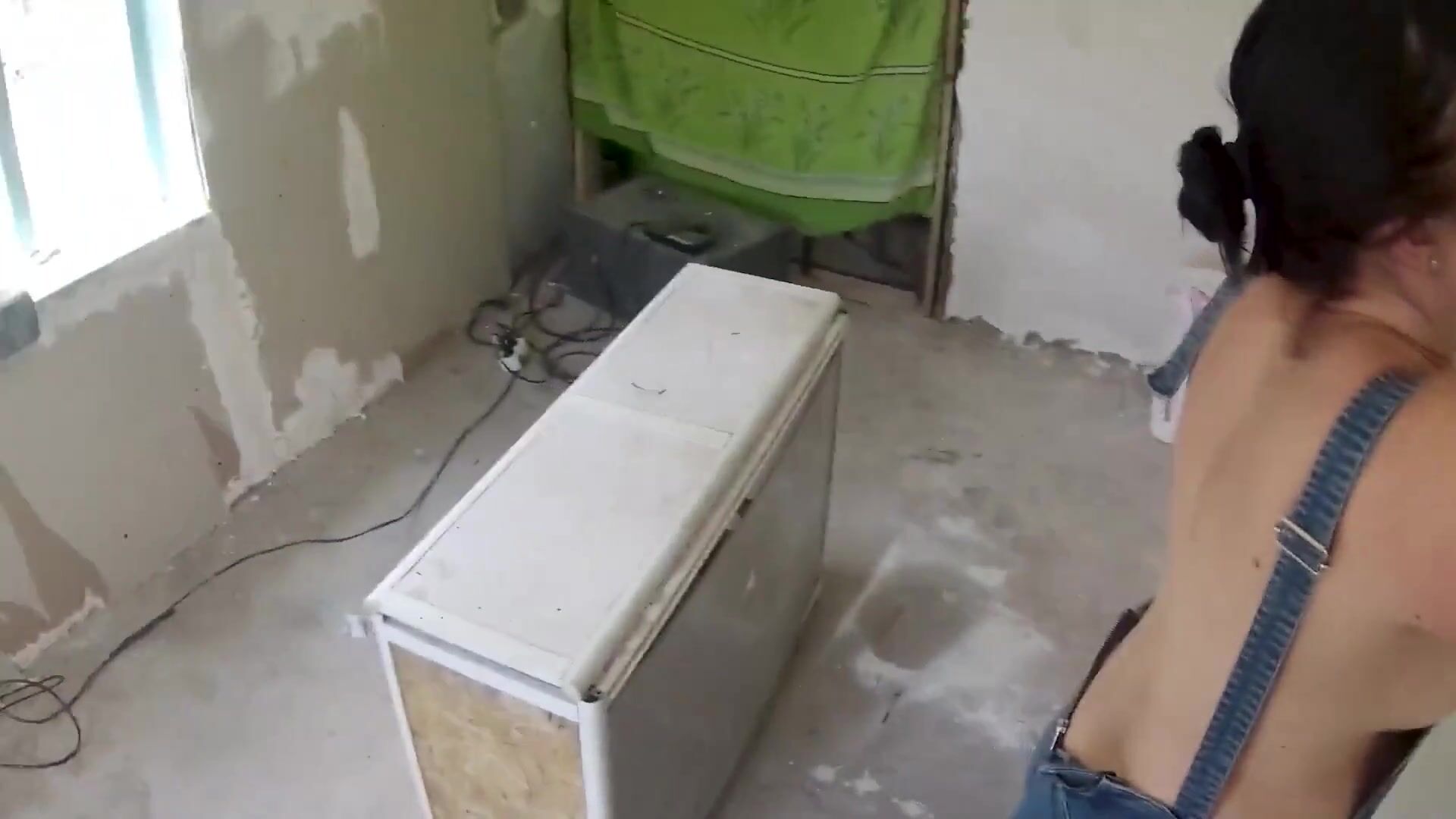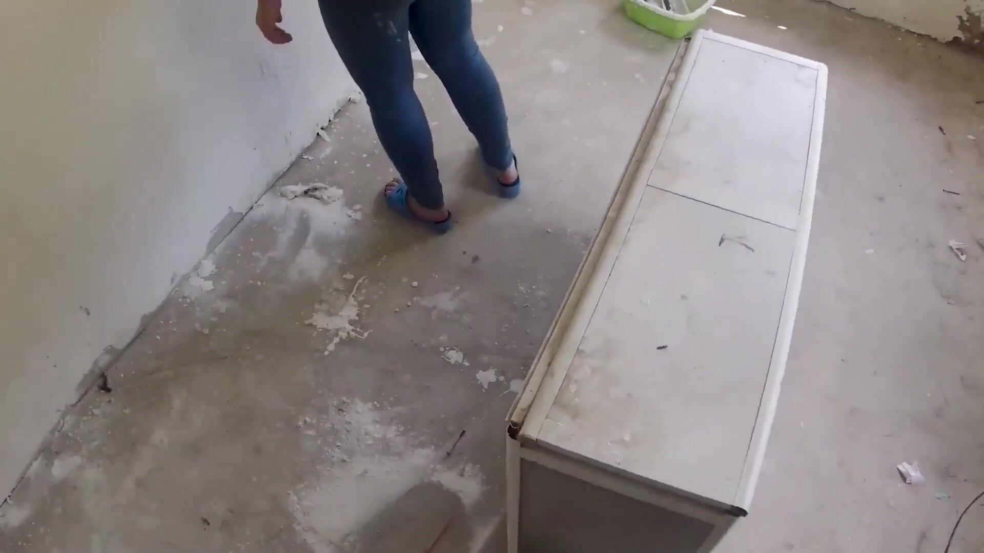 . An ordinary day, ordinary work. I came to check how the girl plasterer was coping. She mated poorly and had to be punished. First I removed the top of her catsuit and felt her big tits. Then he put me on my knees and she sucked my already excited big dick. Then he put her on her back and fucked her tight pussy hard
