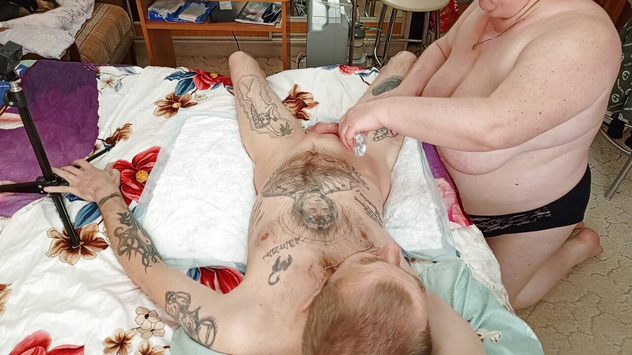 MOTHER-IN-LAW DOES AN OIL MASSAGE OF PENIS AND BALLS AND PLAYING WITH SPERM