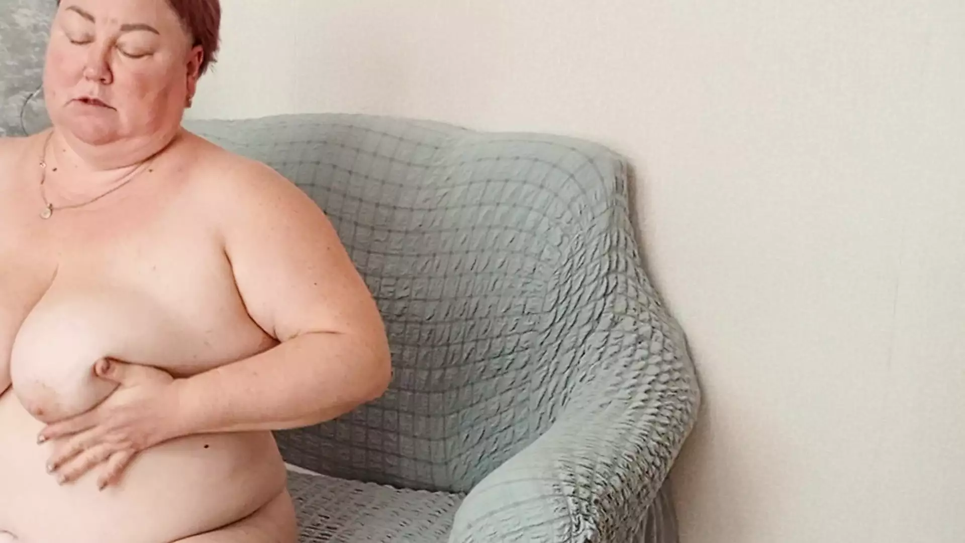 NEIGHBOR WITH BIG TITS CARESSES HERSELF SUCKS DICK AND GETS CUM ON TITS