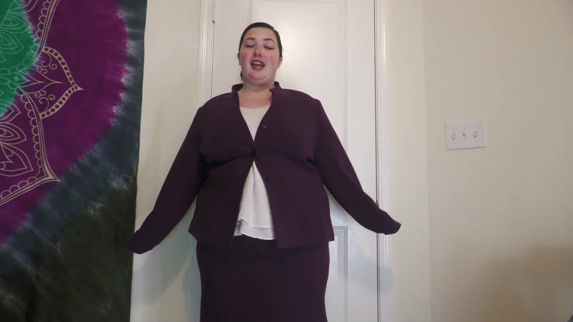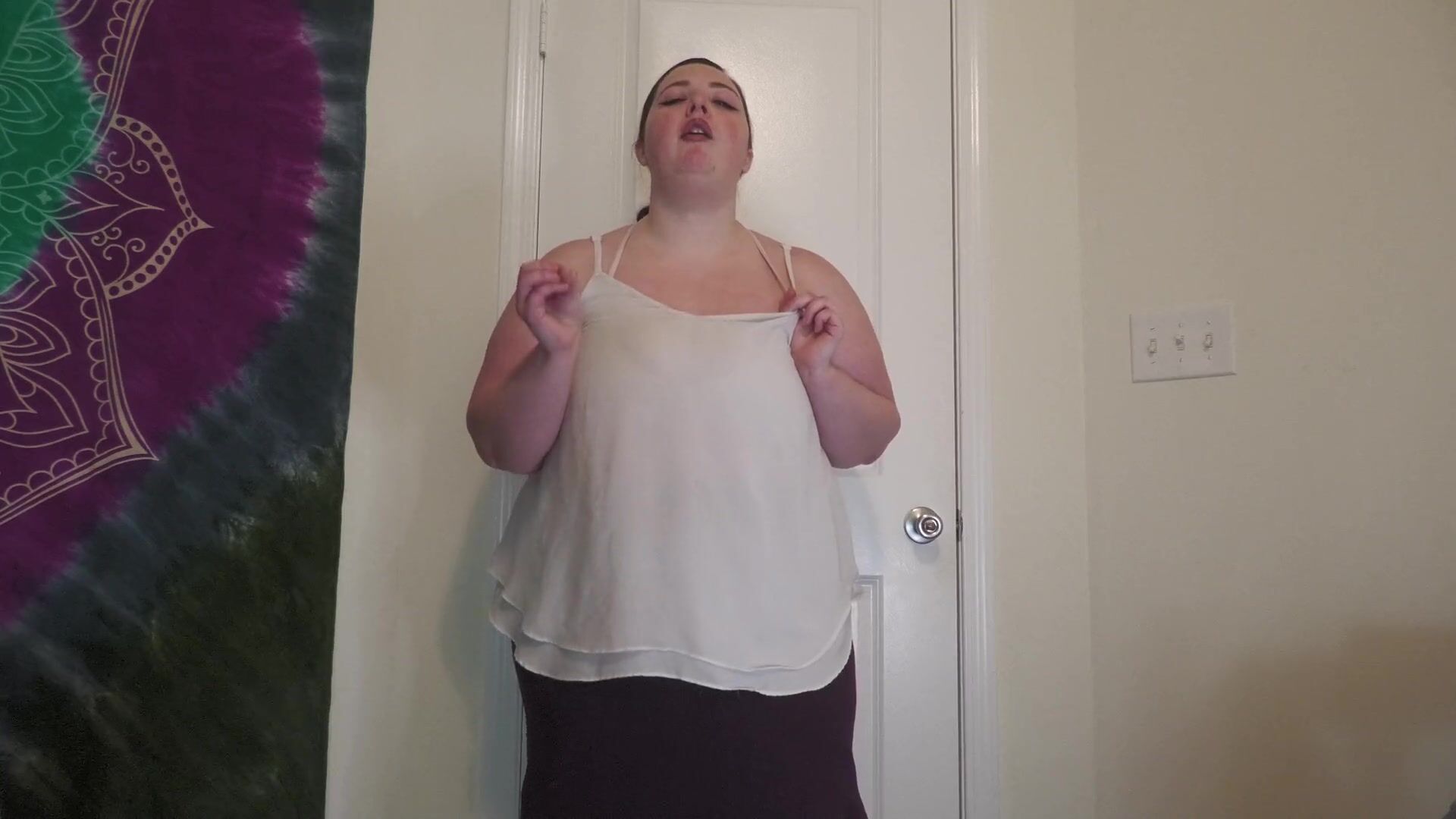 . A chubby bbw walks in on you to get you ready for school only to be convinced into letting you jerk off in front of her. She slowly gets horny and strips out of suit to reveal her massive tits. She then encourages you to cum