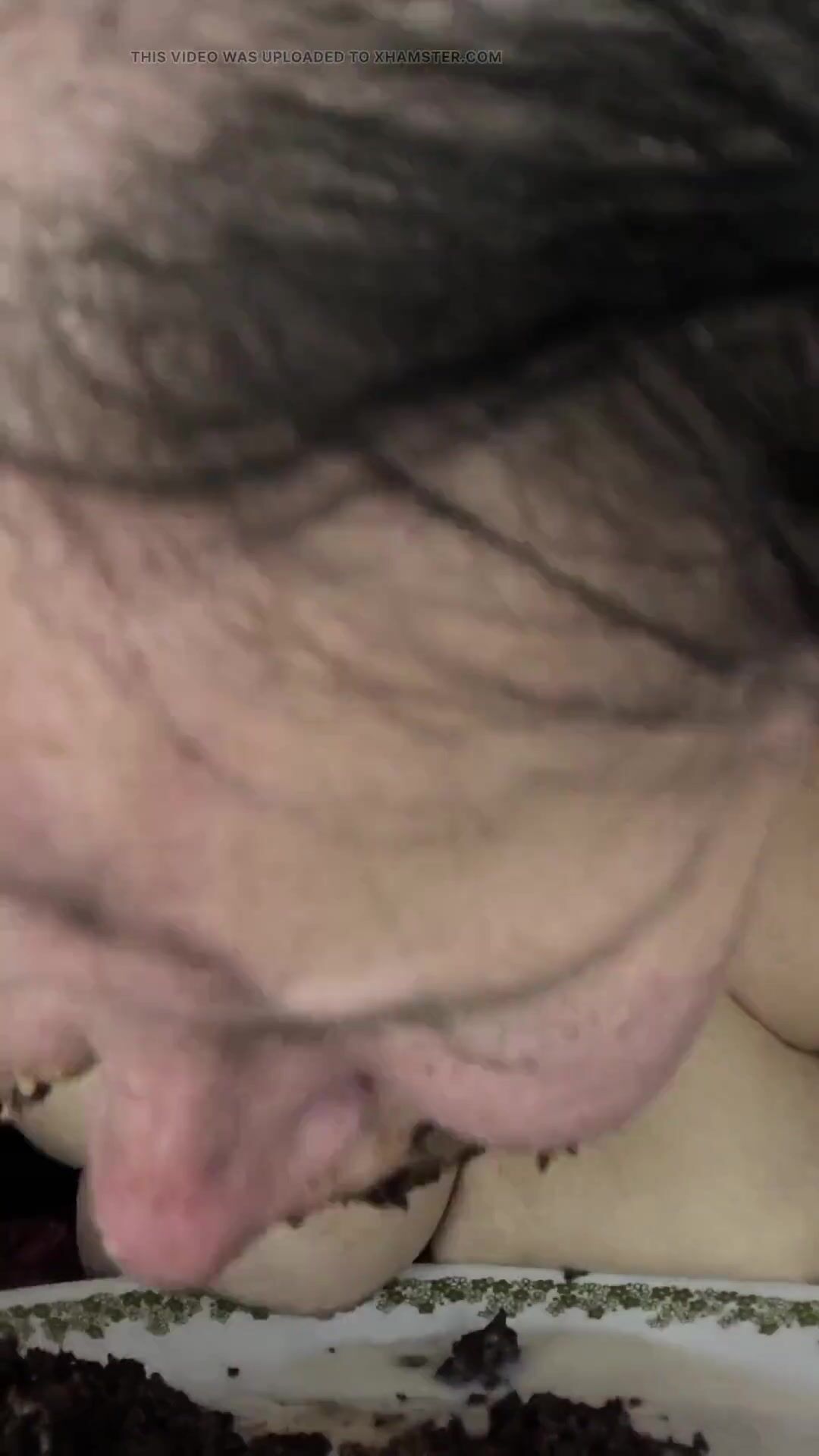 . Whores hungry for cake after gobbling it down like a pig she slurps down that milky cum